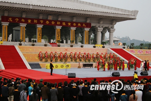 10月7日,以“同享奧運 共祭始祖”為主題的戊子(2008)年重陽節恭祭軒轅黃帝典禮在陜西黃陵縣隆重舉行。我國11名歷屆奧運冠軍參加了恭祭典禮。