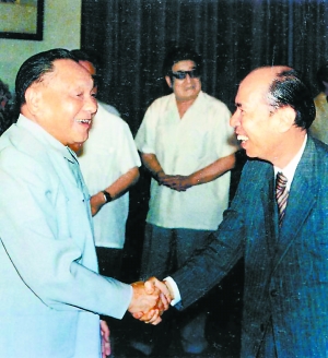 “我在上世紀50年代多次赴京參加國慶觀禮,與鄧小平見過面,但沒有機會交談。正式和鄧小平見面并談話是在1978年4月30日,那是‘五一’國際勞動節前夕,鄧小平以國務院副總理的身份接待港澳同胞和海外華人華僑代表,在人民大會堂幾千人的晚宴上,我有幸被安排坐在鄧小平的旁邊。同桌的還有葉帥。”