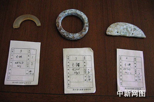 在杭州市余杭區經濟開發區小林村附近燈籠山遺址,考古人員正在進行墓葬后續清理,浙江省文物考古研究所的工作人員介紹,這次出土的玉璜、玉鐲、玉玦都出自這個3號墓葬,同時出土的還有部分陶器。