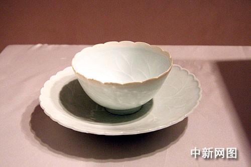 記者還看到,一組青白釉葉脈淺腹盤和青白釉葉脈紋芝碗,均屬于影白瓷器。無論是碗還是盤,釉色均白中閃爍著青色,青里泛著白光,特別是胎身上的紋葉形狀,幾乎與現代工藝相媲美。“僅僅是普通的日用瓷,就有如此高的制作工藝水平,足以反應出南宋時期,中國瓷器業的鼎盛和發達。”專家介紹說。