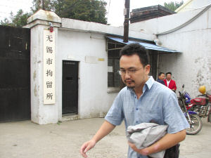 昨日上午8點50分左右,黃海清從無錫拘留所被放出。谷岳飛 攝