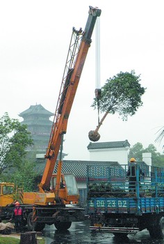 “來了,來了……”在眾人的歡呼聲中,昨日上午10時許,一輛掛著“劉少奇永遠(yuǎn)活在人民心中”大紅橫幅的加長貨車,緩慢地駛進(jìn)了劉少奇紀(jì)念館。“慢點,小心,悠著點……”隨后,在紀(jì)念館工作人員的指揮下,等候在花明樓前的大吊車將一株株不斷飄散著濃郁香氣的桂花樹從貨車上卸了下來,隨后將分別栽種在花明園內(nèi)。