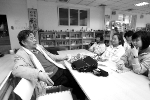 身為北京二中校友的舒乙先生,昨日走進自己的母校。不過這次他的身份有些變化,不是作為母校的畢業生,而是學校畢業生的“導師”。