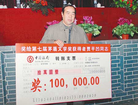 賈平凹獲得10萬元獎金。 記者 尚洪濤 攝
