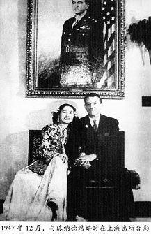 1947年12月,陳香梅與陳納德結婚時在上海寓所合影