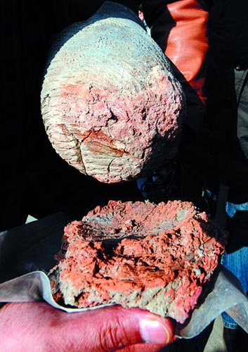 盔形器上附著紅燒泥塊 本版攝影 記者 郭建正