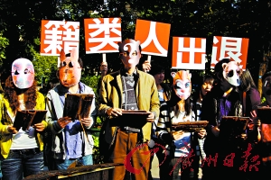 昨日下午2時(shí)30分許,行為藝術(shù)家流野、黎永泰等帶領(lǐng)40余人在廣州人民公園舉行儀式,宣布“退出人類籍”,并表演了“退人類操”。他們還選出10個(gè)退出人類后甘愿進(jìn)化為動(dòng)物的先進(jìn)分子進(jìn)行了宣誓。誓詞的大意為:我甘愿退出人類籍,順應(yīng)天理,遵守大自然的規(guī)律與公道,執(zhí)行造化的暗示,正義地反對(duì)人類為所欲為的戰(zhàn)爭(zhēng)、掠奪與虛偽,為宇宙、自然界的真正和諧解放而奮斗終身!此舉引來(lái)數(shù)百人聚集圍觀,公園方面如臨大敵,派出保安現(xiàn)場(chǎng)維持秩序。儀式結(jié)束后,40余個(gè)宣稱已經(jīng)是動(dòng)物不是人類的行為藝術(shù)家,還舉著“退出人類籍”牌步行15分鐘,到附近菜市場(chǎng)慰問(wèn)了待宰的動(dòng)物,表示慰問(wèn)和默哀。