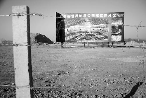 在諸城市政府網站上,關于最新的招商引資項目中,就有兩個關于建設恐龍化石地質公園的項目。在臧家莊發掘現場,一個蛋殼形狀的場館規劃圖屹立在發掘現場。工作人員介紹說,自2008年以來,先后在此出土大量恐龍化石,該化石群規模之大、品種之多世界罕見,是古生物科考的重大發現。為保護好該化石群,諸城市決定在此建設恐龍谷世界地質公園分館。該館外形設計為裂開的恐龍蛋殼形狀,寓意新發現、新收獲、新希望。館內展示主要采取底層立體展示、化石平面展覽、 地下化石層隧道展示等,項目占地約100畝,建筑面積3500平方米,總投資2000多萬元,于2008年9月開工建設,計劃2009年7月1日前建設并投入運營。分館建成后,與恐龍谷世界地質公園主場館遙相呼應,形成“一龍一蛋” 的旅游格局。“建成之后大家就可以順著扶梯到地下,看看發掘現場,看看恐龍化石,這些在不遠的將來都會實現。”工作人員告訴記者。工作人員所說的主場館,就是即將建立在這次發掘出最大鴨嘴龍化石的庫溝村村北。在這條東西走向的化石隆起帶上,將建成一座全新的恐龍化石地質公園。“ 這里發掘的恐龍化石,顏色還真挺特別,紅色、褐色的特別多,可能與這里的土質有關吧!周圍都是紅土。 而在臧家莊那邊,發掘的化石顏色大都是黑色或者白色。”