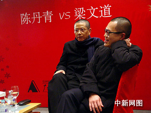 在介紹完兩位的新書后,主持人讓二人在春節前向讀者打個招呼。陳丹青說:恭喜發財。梁文道言:江山盡好,歲月無聲。陳丹青講藝術里面有一個特別的用法叫“并制”,他們兩個并制到一起有很特別的效果。因為兩位都是光頭,形象非常相似。以前陳丹青上節目喜歡穿中式的黑色衣服,昨天改穿西裝。陳丹青解釋說:“這些年已經不穿了,因為總問你為什么穿這個,總要回答多少次,很煩就不穿了。”梁文道笑稱:“這是山寨版的陳丹青。”