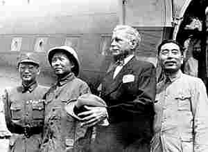 1945年8月28日,毛澤東赴重慶談判。臨行前,他換了換裝,穿上了葉劍英特地給他買(mǎi)的皮鞋和在北京給他訂做的一套藍(lán)灰色中山裝。江青到蘇聯(lián)醫(yī)生阿拉夫那里為毛澤東借來(lái)了一頂禮帽。周恩來(lái)上上下下打量毛澤東這身裝束,毛澤東說(shuō):“怎么,嫌我穿得太洋氣?”周恩來(lái)說(shuō):“不,我是看主席戴的帽子好像有點(diǎn)小!闭f(shuō)著,摘下自己頭頂上的盔式太陽(yáng)帽遞給毛澤東:“主席,你戴上這頂試試,重慶的日光是很強(qiáng)烈的!泵珴蓶|接過(guò)太陽(yáng)帽戴上,不大不小正合適。周?chē)耐疽舱f(shuō)好。毛澤東風(fēng)趣地說(shuō):“恩來(lái),我可奪人所好啰!”并問(wèn)周恩來(lái):“你戴什么呢?”周恩來(lái)說(shuō):“我還有,再說(shuō),重慶我比你熟,總可以搞到一頂,這頂就送給你吧。”于是,毛澤東就戴上這頂盔式太陽(yáng)帽登上飛機(jī),去了重慶,并在重慶機(jī)場(chǎng)留下了一張頭戴盔式禮帽的歷史照片。