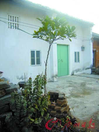 何,摰睦霞,離鎮政府很近,步行5分鐘就可到達。這是一座不大的瓦平房,外墻似乎刷過一遍白灰油漆,十分鮮白,綠色的鐵門緊緊關閉。