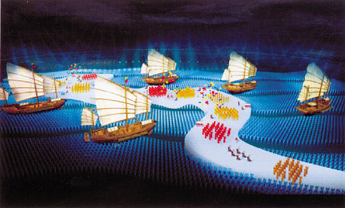 翻開那本厚實的“標書”,不少圖片令人感覺“似曾相識”,如夢似幻的海上絲綢之路、揚帆遠航的鄭和寶船、翩翩飛舞的敦煌飛天……這樣的場景從2008年8月8日那天起,鐫刻在許多人的記憶中。不過,這可不是北京奧運會開幕式的“拷貝”,翻回“標書”的封面,“2005年7月28日”的字眼讓人確信,這份方案比北京奧運會開幕式早了三年多。