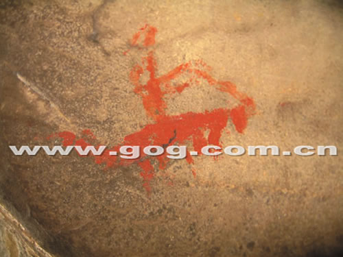 據(jù)介紹,去年12月16日,貴州省考古所所長助理李飛、研究員楊洪在普定縣考古所所長陳發(fā)武帶領(lǐng)下,到化處鎮(zhèn)考古時(shí),無意中在該鎮(zhèn)中學(xué)對面的空山腳下巖石上發(fā)現(xiàn)一些紅色印跡,經(jīng)仔細(xì)辨認(rèn)后,這些紅色印跡被確認(rèn)為巖畫。隨后,幾位考古專家又繼續(xù)往半山坡上尋找,共發(fā)現(xiàn)了10余幅巖畫。這些古巖畫中,許多畫清晰可辨,有栩栩如生的小狗,有耀武揚(yáng)威騎馬的將軍等等。