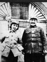 1938年雙十節(jié),由王明的夫人孟慶樹介紹(一說陳賡介紹),40歲的八路軍副總司令彭德懷,在延安娶了北師大著名的浦氏三姐妹(潔修、熙修、安修)中的小妹、20歲的嘉定姑娘浦安修(1918-1991),婚后無子女,但共度戰(zhàn)爭歲月,感情甚篤。廬山會(huì)議后,浦安修幾經(jīng)斟酌,終與彭德懷在60年代脫離關(guān)系。當(dāng)時(shí)老彭切開一個(gè)大梨,二人各吃了一半。