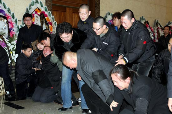 上午8點,千余綱絲手捧白菊花、高舉張文順的紀(jì)念畫冊前來吊唁,長長的隊伍排出了百米開外。公眾追悼儀式開始,曲藝同仁李金斗、劉洪沂、謝天順、梁厚民第一列入場。張夫人激動地握住李金斗的手放聲大哭,李金斗連連安慰,說有困難他一定會幫忙。走出大廳,李金斗說:“張文順是我同班學(xué)長,大師哥為人豪爽,非常聰明。感謝德云社能照顧他走完一生,沒有德云社就沒有張文順的名望。”