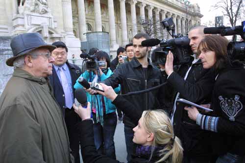 據(jù)法國《歐洲時(shí)報(bào)》報(bào)道,2月25日下午,在圓明園獸首拍賣前夕,部分旅法華僑華人與留學(xué)生自發(fā)到巴黎大皇宮前拍賣現(xiàn)場(chǎng)外,散發(fā)說明圓明園劫難及獸首來歷的小冊(cè)子,告訴法國人圓明園歷史的真相,表明旅法華僑華人及留學(xué)生的立場(chǎng),督促有良知的法國人盡快通過一定渠道歸還被劫的歷史文物。《圓明園大劫難》作者、法國歷史學(xué)家布里賽等法國友人也到現(xiàn)場(chǎng)宣講真相。這次活動(dòng)受到法國主流媒體的廣泛關(guān)注。