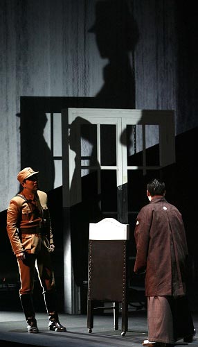 相比原著小說,舞臺(tái)上的《風(fēng)聲》敘事和人物情感更為跌宕和大線條,因此頗具沖擊力,但很多細(xì)節(jié)和人物的合理性因此略顯不足。不過,一波三折的故事情節(jié)和抽絲剝繭的謎底揭曉,始終讓全劇保持著可看性。尤其是下半場(chǎng),和上半場(chǎng)為交代情節(jié)略顯拖沓的節(jié)奏相比,更為緊張和精彩。