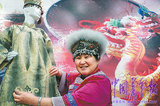 眼下,尤文鳳已把這手絕活傳給了兒子和媳婦,連8歲的孫女也跟她學會了縫魚皮?墒牵麄赫哲族也只有七八個人會做魚皮衣服了,尤文鳳對這門技藝的傳承,有點兒擔憂。