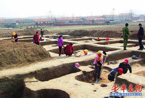 從3月26日開始,經國家文物局批準,山東大學考古實習隊與青島市文物保護考古研究所合作,對青島市即墨北阡文化遺址進行了第二次考古鉆探和發掘。記者 4月6日采訪了解到,在2007年第一次發掘的基礎上,此次又新發掘了四座周代墓葬,發現了成套的陶器及殉狗等,同時還發現了大汶口文化早期的二次合葬墓及“紅燒土”房屋遺址等。據介紹,本次發掘活動將持續到 5月底,力爭通過發掘和研究追溯和還原6000多年前先民們的生活狀態。
