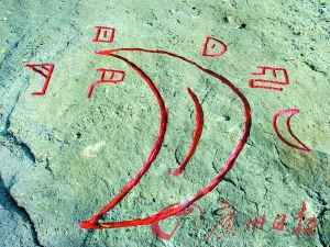 在廣州蓮花山上,有一塊50m×100m那么大的紅砂巖,這塊紅砂巖上面雕刻著5000多個甲骨文字。這些甲骨文的雕刻者叫荊鴻,他從小就開始學習篆刻并研究甲骨文,有趣的是,在大連長大的他和著名的甲骨文專家郭沫若是鄰居,就是在郭沫若的影響下,他開始了長達幾十年的研究甲骨文的旅程,現在他已經把收集到的5000多個甲骨文字編寫成了一部甲骨文字典并雕刻在了蓮花山的巨大巖石上,這塊巖石被他稱為甲骨文的“摩崖字典”。