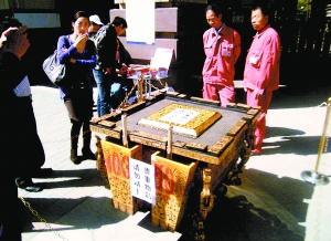 昨天中午,記者看到一只編號(hào)為0350的奧運(yùn)缶擺在該小區(qū)門前,其四周用鎖鏈與地面連接,缶上貼著“貴重物品,請(qǐng)勿觸摸”的紙條。旁邊坐著兩名自稱是中國(guó)金銀幣禮品網(wǎng)員工的女孩。據(jù)她們介紹,所賣的缶都是奧運(yùn)會(huì)開(kāi)幕式上用過(guò)的,完好無(wú)損,均由單位以每個(gè)10萬(wàn)元左右的價(jià)格從官方拍得,除部分?jǐn)[在分公司展示外,剩下六七只準(zhǔn)備售賣,現(xiàn)在明碼標(biāo)價(jià)賣12.8萬(wàn)。“每只缶都有收藏證書和電子身份證書,可以上網(wǎng)核查真?zhèn)巍[在這里的是供展示,如果市民有興趣,可以留下手機(jī)號(hào)。”賣缶人員說(shuō)。