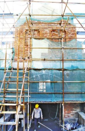 記者昨天在這座紅磚老建筑旁看到,全面包裹的房屋內(nèi),施工人員正對外立面及內(nèi)部部分結(jié)構(gòu)進行全面修繕。在一旁的倉庫內(nèi),原本房屋內(nèi)的木雕扶手,護欄等已經(jīng)被拆下保存,將等到房屋修繕竣工后才重新還原。現(xiàn)場一位施工負(fù)責(zé)人告訴記者:“保護原始風(fēng)貌,整個建筑將進行外墻翻新和內(nèi)部及屋頂天臺等的布局調(diào)整,工程將于今年6月底完工!