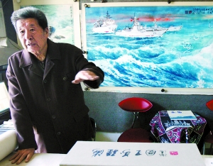 時值海軍成立60周年,78歲的李海濤向本報展示他40年來所畫的海洋圖,包括《萬國海疆圖》和海軍赴索馬里出征圖。李海濤回憶,曾經有一位普通的海軍士兵看完他的畫說:“60年前的我們有海無防,但我們有這么美麗的海,可以來保衛它,是一種驕傲。”