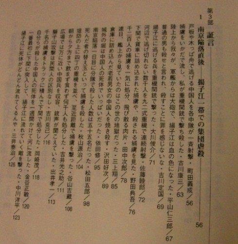 在下關(guān)刑場附近,從城中開來滿載中國人的敞篷卡車絡(luò)繹不絕,停在倉庫中間。作為海軍軍官的奧宮認出這支部隊屬于第九師團第三十六聯(lián)隊,他走進碼頭的倉庫群,看到兩手被綁在背后的十幾個中國人,被一個個拉到江岸邊幾米的地方,用軍刀和刺刀慘殺后,投入揚子江中。江中只見層層疊疊的尸體,靠近岸邊的江水為之阻塞,以肉眼幾乎難看出的速度裹挾著尸體艱難流向下游。但,有些人還沒有徹底死透,掙扎著向岸邊淺灣處逃生,那附近已經(jīng)是一片血海,因為那里等待他們的,是早有準備的槍擊和刺刀。整個過程如同流水線一樣秩序井然,連大聲指揮的人都沒有。看來,明顯是根據(jù)上級的命令在進行。我向刑場入口的一個下士問道:"這么多中國人,就這樣安安靜靜被帶來,你們是怎么做到的?"回答是:"城內(nèi),對著在廢墟上收拾的中國人問:'有肚子餓的舉手',然后把舉手的裝上卡車作出帶去吃飯的樣子,就完成了唄。""那么,為什么用日本刀和刺刀行刑呢?""長官說,為了節(jié)省子彈。"