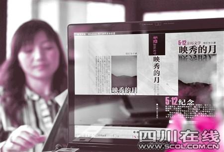 “你好,我是周紅令。”下午2點,周紅令帶著筆記本電腦出現在記者面前,她蓄著優雅的長卷發,素雅的條紋襯衫剪裁合身。在成都鬧市,她有兩家玉石門市,是個有些小資的女老板。周紅令打開電腦,已經排好版的作品《映秀的月》快速閃過,一張地震時渾身是泥的照片,讓她有些羞赧。