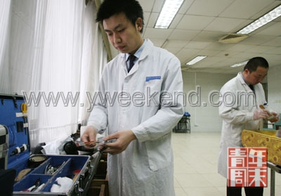 去年殯儀館招來一個漂亮的小姑娘,第一天培訓結束后,老師傅問她有沒有男朋友。小姑娘說有。老師傅回頭沖著張洋喊,別惦記了,人家有。后來,張洋鼓足勇氣追過一陣,但沒追上。坐在記者對面,他有點不想提“失敗的原因”。其實,這個男孩長得很精神,只是臉上常常流露出一種不符合年輕人的老氣和憂郁。“可能我的性格問題吧,我像一60年代的人,不活份,不新潮。”張洋說不清自己是天生如此,還是這份工作造成的——至今,他都不習慣用Ipod,聽音樂還用CD機。