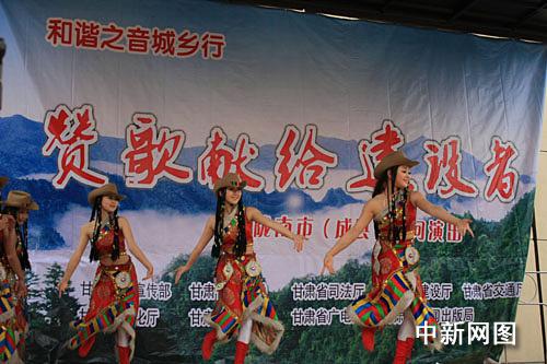 中新網(wǎng)隴南5月6日電 (記者 劉薛梅)“和諧之音城鄉(xiāng)行-贊歌獻(xiàn)給建設(shè)者”慰問(wèn)演出活動(dòng)今天在甘肅省隴南市成縣店村舉行。