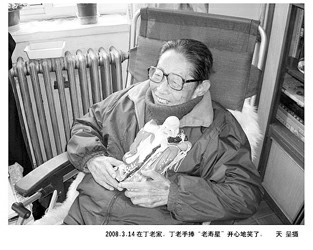 丁聰老人是26日11時(shí)在醫(yī)院飄然遠(yuǎn)行的。丁聰?shù)姆蛉松蚓吭陔娫捴谐领o地證實(shí)了這個(gè)消息:“謝謝你們的關(guān)心,但我們家人尊重丁先生的愿望,不設(shè)靈堂,不舉行一切追悼和紀(jì)念儀式。他只想安安靜靜地離開!