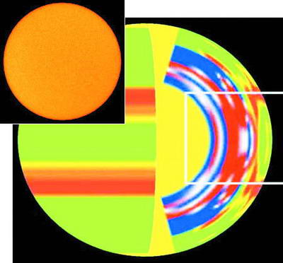 NSO科學家Frank Hill表示,這便是在太陽上發生的一切,只不過略有不同罷了。利用一種被稱為日震學的技術,他和同事Rachel Howe從上世紀90年代中期開始對太陽射流進行跟蹤研究。這種方法與地震學家用于探測和評估地震的方法類似,并且由于太陽射流發生在太陽表面下幾千公里,因此日震學的應用便顯得尤為重要。Hill和Howe發現,與正常情況所需的11年相比,形成于1996年的太陽射流運動得更為緩慢——用了13年才到達了臨界的南北緯22度。