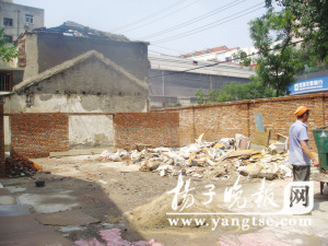 在院落里,用新磚圍出一塊空地,里面堆放著各種建筑垃圾。一位社區工作者正指揮著垃圾車進進出出。社工告訴記者,選擇在這里倒垃圾也是無奈之舉。“因為周圍不少是學區房,加上地段好,買房裝修的市民特別多。”社工說,這些建筑垃圾被隨意丟棄,周圍市民反映非常大。“我們請來了保潔隊定期清理。可是,新街口寸土寸金,根本沒有地方堆放。”