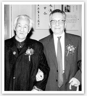 周倫玲給記者發來了兩位老人的一張獨家合影,是2002年時,兩人在中國美術館“中國學者書法展”上留下的。