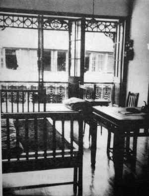 1920年5月5日,毛澤東以“驅(qū)張”代表團(tuán)成員的身份,從北京來(lái)到上海,住在靜安區(qū)原哈同花園附近的哈同路民厚里29號(hào)(今安義路63號(hào))。這是一幢磚木結(jié)構(gòu),坐南朝北,沿街而建的舊式二層樓里弄房子。樓下是會(huì)客室兼飯廳。樓上的臥室有一排臨街的長(zhǎng)窗。室內(nèi)放著兩張床,一只茶幾和一張桌子。桌上擺著粗瓷茶壺,茶杯及筆硯文具。毛澤東就住在這里。同住的還有李思安、李鳳池、陳書(shū)農(nóng)等三個(gè)湖南學(xué)生。他們每人每月僅有3元零用錢。過(guò)著十分簡(jiǎn)樸的生活。四個(gè)人輪流做飯,常吃蠶豆煮飯,生活比較清苦。毛澤東在這里每天都要閱讀各地的報(bào)刊和書(shū)籍。他還邀請(qǐng)十多位旅滬青年,成立了“自修學(xué)社”,共同學(xué)習(xí)各種理論著作和外語(yǔ)。1920年6月7日,毛澤東寫信給北京的黎錦熙老師,信中談及南下見(jiàn)聞和自己追求革命的決心,說(shuō)他準(zhǔn)備瀏覽在滬“新出的報(bào)、雜志、叢書(shū)及各種譯本,尋獲東方及世界學(xué)術(shù)思想之大綱要目”。