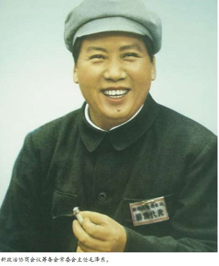 1949年6月11日,新政協籌備會第一次預備會在香山毛澤東的住所舉行。會議大體議定了新政協籌備會的參加單位、人數和人選,以及新政協大會參加單位和人數等。15日晚,新政協籌備會第一次全體會議在北平中南海勤政殿開幕。出席會議的有23個單位的134位代表,其中“黨員43人,進步人士48人,中間人士43人,其中中間偏右者只有16人,在進步人士中有15個秘密黨員。共產黨對政協籌備會可保障絕對的領導”。第二天,籌備會協商通過了由21人組成的常務委員會,推選毛澤東為常務委員會主任,周恩來、李濟深、沈鈞儒、郭沫若、陳叔通為副主任。