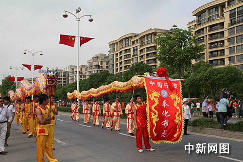 在浙江各地市的“獻禮”中,杭州獻上了具有地方特色的《余杭滾燈》、《五鳳朝陽》等節目。以“龍騰浙江”為主題,寧波獻上了《奉化布龍》,溫州獻上了《龍灣拼字龍》,湖州獻上了《長興百葉龍》,嘉興獻上了《平湖九彩龍》,臺州獻上了《龍鳳呈祥》。除此之外,還有金華獻上的《十八蝴蝶》,舟山獻上的《踏浪祝福》,麗水獻上的《青田漁燈》等節目,共同祝賀祖國六十年誕辰。(完)