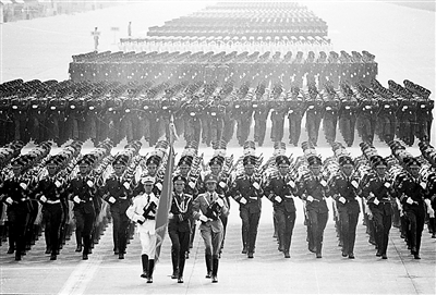 6 閱兵的“中國特色”。古今中外的閱兵典禮,受檢閱的官兵或高呼“萬歲”,或高呼“勝利”,從愷撒到拿破侖,從沙皇到凱瑟琳,從華盛頓到羅斯福,幾乎千篇一律。而我軍閱兵式,閱兵首長總要親切地問候:“同志們好!”接著是山呼海嘯般地回答:“首長好!”閱兵首長又慰問道:“同志們辛苦了!”同樣是山呼海嘯般地回答:“為人民服務!”這一問一答,分明是在向世人昭示:我軍是全心全意為人民服務的人民子弟兵,是官兵一致、軍民一致、為著共同理想信念而團結起來的鋼鐵長城,是區別于一切剝削階級軍隊的新型武裝力量,而官兵關系融洽、軍民團結如一人的軍隊必將無敵于天下!