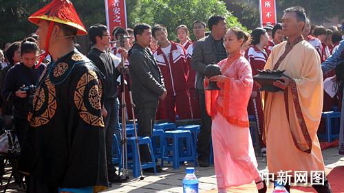 伴隨著鐘鼓齊鳴,40條論語牌樹立在大典兩側(cè),60名優(yōu)秀學子舉行成人典禮,意在秉承孔子的思想,發(fā)揚圣人的風氣。