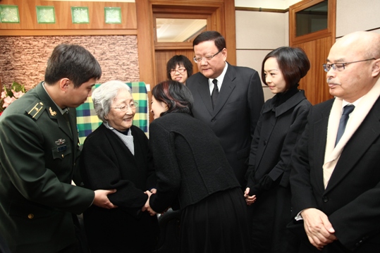 中新網北京11月4日電 今年,在舉辦2008華人盛典頒獎禮、“蔣英師生作品音樂會”的過程中,鳳凰衛視作為代表性的華文媒體,與錢學森一家建立了深厚的友誼。10月31日驚聞錢老去世后,鳳凰人一直深深掛念。11月4日,鳳凰衛視總裁劉長樂主持人攜陳魯豫、許戈輝、曾子墨及評論員阮次山赴錢學森靈堂吊唁,代表鳳凰衛視全體員工向錢老致哀。錢老去世后鮮在媒體露面的夫人蔣英女士,平靜祥和地向前來吊唁的劉長樂一行表示感謝。蔣英老人的身體狀況和精神狀態尚好,令人放心許多。