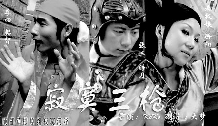 近日,文殊坊一牌坊內,一群身著奇特服裝的年輕人引來不少游人注目。女子身著紗裙,高挽的發髻上別著一個橘紅色的咖啡勺;一男子頭上纏著粉色紗巾,一身粉色長袍內配一件繡著牡丹的肚兜,腰間系著一條金黃色的抹布;另一男子頭戴鋼盔,身著盔甲,手持長劍,外表冷峻。不少路人議論紛紛,稱這些造型好眼熟。原來,這是成都草根劇組正在拍攝《寂寞三槍》,而這實際上也是今年《寂寞春晚》中的一個節目———《蝸居時代的愛情故事》,在視頻的結尾,“李四”模仿小沈陽的口氣邀請大家:親愛的賈君鵬們,你們準備好了嗎?歡迎到“寂寞春晚”吃年夜飯。目前,拍客已經把這段《寂寞三槍》的拍攝視頻發到了網上,引起了網友們的極大興趣,點擊率很高。對這個節目,KoKo只神秘地透露了一句話:3個人窩到一起居住,又是三角戀,結果可想而知了。《賈君鵬的團圓飯》是一個互動參與的節目,劇組會事先把菜單設計好,參與的人分成小組搶菜單,看誰拼出的團圓飯菜單最好。當然,搶菜單并不是一件簡單的事,如果搶到的全都是湯,那么今年就“泡湯”,如果搶到的全都是菜,那么今年就“歇菜”。《釣魚之法》也是一個互動小游戲,用魚鉤去釣酒瓶里邊的小字條,字條上有一個手機號碼,釣到就可以打,電話號碼是觀眾進場時就留下的,到時候會打通誰的電話就看緣分了。魔術《不差錢》會有一個魔術師不停變“錢”出來,游戲《甲骨文》將邀請觀眾用甲骨文碎片拼出一句和愛情有關的話,就像《風聲》里面破譯摩斯密碼一樣,會非常有趣。