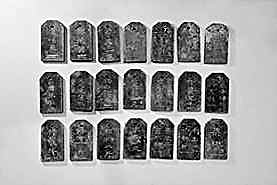墓地出土(或從盜墓賊處繳獲)的石牌和石枕,有關方面認為是根本性的確證。圖一中有兩塊石牌寫著魏武王大戟,這是很有意思的,因為我們看到的是石牌不是武器戟本身。牌子是說明實物的,如何根據牌子證明這就是曹操的墓地呢?牌子上面寫著魏武王常用格虎大戟,表明這是在說明商品的名稱,而不是說這是曹操的遺物。再看圖二計21枚牌子,這些牌子上面都有孔,以作懸掛用,上面寫的多是物品名數,如胡粉二斤、黃豆二升之類。如果把這些看成是遺物陪葬,那就不免奇怪了。因此這些所謂遺物應該是陳列的商品招牌,那么這幾間陰室要么是做過倉庫,要么就是堆放過商品。而這些牌子只是為了說明記錄這些貨物用的。從稱呼上看,曹操生前先封為“魏公”,后賜九錫,進爵為“魏王”,死后謚號為“武王”,其子曹丕稱帝后追尊為“武皇帝”,史稱“魏武帝”。出土石牌、石枕刻銘稱“魏武王”,名稱倒是不錯,但石枕形貌不是生活中可以適用的物品,應該出自偽造。從物品所刻字體看,刻工水平很差,所以只能是來自民間藝人所作,因為從盜墓人手中獲取,也不排除盜墓人游戲之作。