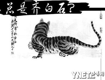 齊白石作品今春再度成為拍賣場上的焦點。昨天,香港蘇富比春拍在京舉行預展,白石老人難得一見的作品《虎》估價待詢,更加引發好奇!褒R白石的名字從來都是拍賣場上的明星。可以說,沒有齊白石,就無法稱其為‘中國近現代書畫的拍賣場’!