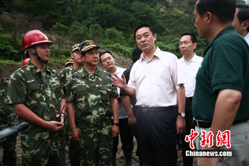 中新網映秀8月18日電(劉賢 張浪 胡曉)“要堅決打贏抗擊特大山洪泥石流斗爭,誓死保衛人民生命財產安全,誓死保衛災后恢復重建成果。”18日下午,四川省委書記劉奇葆赴映秀指揮抗洪搶險時如此強調。