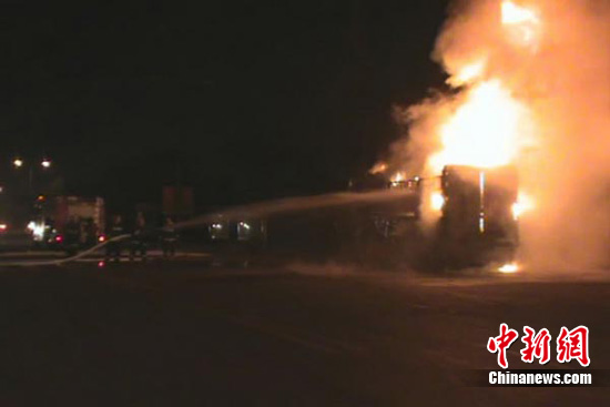 消防隊員針對現場情況,分別在車的四側鋪設水帶架設水槍陣地用對火進行撲救,20分鐘后,大火被撲滅。