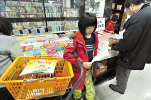 據新華書店負責人介紹,連日來,書店無論是客流量還是購書量都有明顯的增加。“新課標系列的閱讀叢書、字帖類的書籍最受歡迎。”在書城內,記者碰到了一位尋找字帖的小女孩。原來學校要求學生寒假練習寫字,指定了某本字帖作為練習用書,所以造成該書的暫時脫銷。