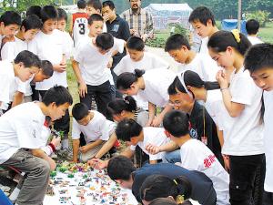 漂亮的別墅、美麗的天使、威武的坦克……各式各樣的小玩具被心理救援隊員們一字擺開。“每人挑一個喜歡的,然后坐到沙盤邊來,聽我給你們講故事好不好?”復旦大學心理學教授申荷永招呼著。很快,每個沙盤邊就圍坐了七八個學生!澳銥槭裁匆x房子模型呢?”“我家的房子被震壞了,希望能有一幢堅固的房子……”心理援助就以這樣問答的方式展開。通過這樣挑選玩具后自由表達心聲的方法,能讓孩子逐漸擺脫對地震的恐懼感,大膽說出自己的想法和愿望。