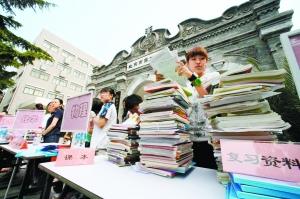 “眼看就要高考了,聽說他們連課本都沒有。”“我的高考結束了,我想我的資料能對他們在高考中考出好成績提供幫助!弊蛉丈衔9時,剛剛結束高考的北京高三學生們在二中校門外將自己的復習資料捐贈給災區,他們還將自己的祝福寫在復習資料的扉頁上,向經受地震災害的同齡人送去鼓勵。