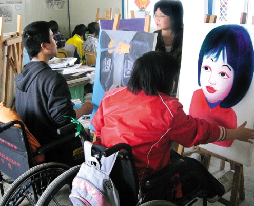 現在靠文化課上本科,對這屆畢業生來看,我覺得很難。不過,從去年開始,我們有意識地動員高三學生突擊學畫畫,畢竟藝術考生文化成績不高,而且對殘疾人來講,學畫畫也是一個不錯的出路。著名畫家周春芽還專門輔導了我們這些學生。這次有30多名畢業生參加了藝術類統考,成績不錯,估計有10多人可以上本科院校。